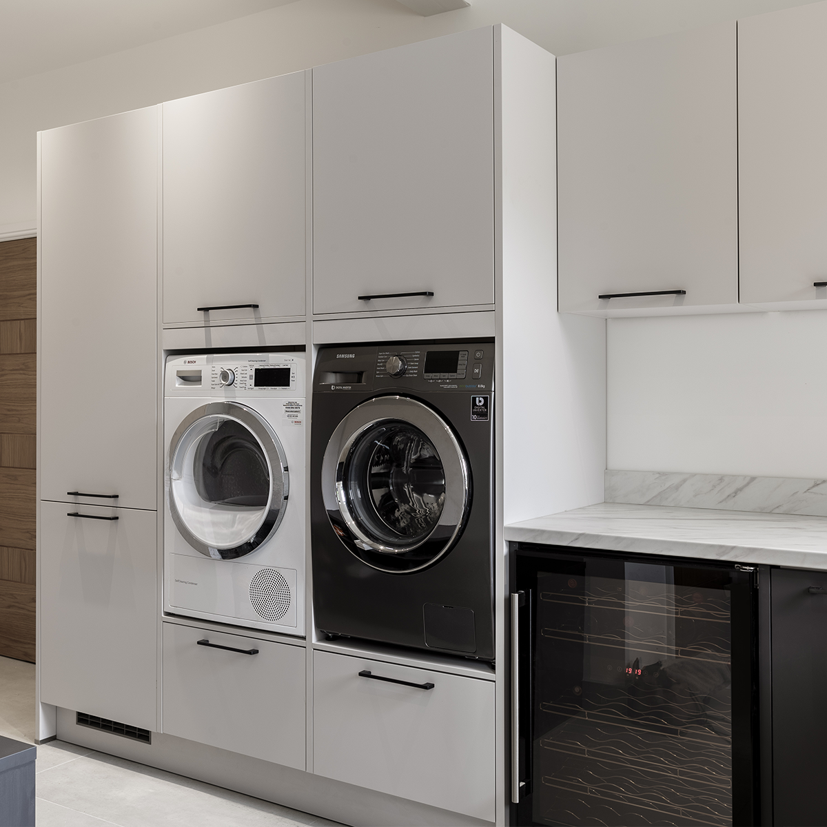 Washing Machine and Tumble Dryer: Space for these appliances is fundamental. If space allows, having them side by side is convenient, but stacking them can save room in tighter spaces.